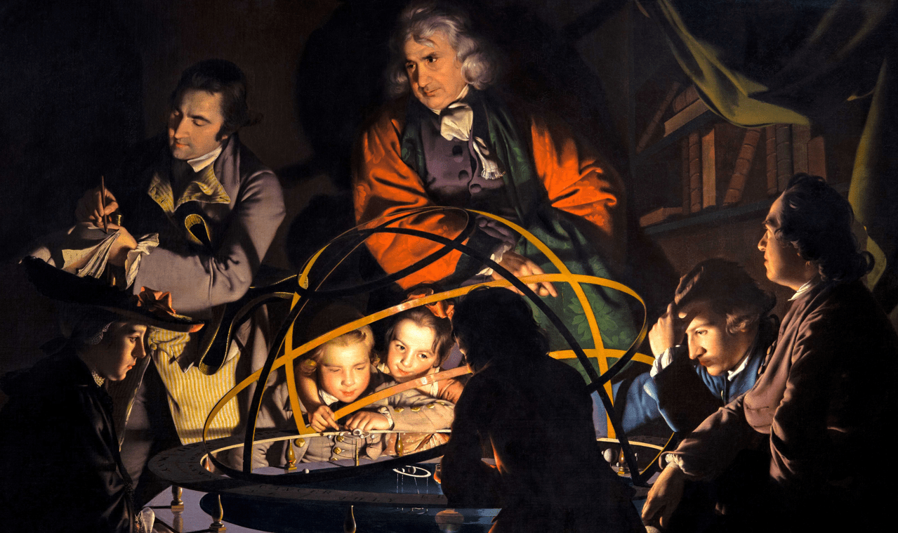 The illustration on the top of this page is a detail from The Orrery, ca 1766, by Joseph Wright of Derby (1734–1797), Derby Museum and Art Gallery. Public Domain: File:Wright of Derby, The Orrery.jpg – Wikipedia
