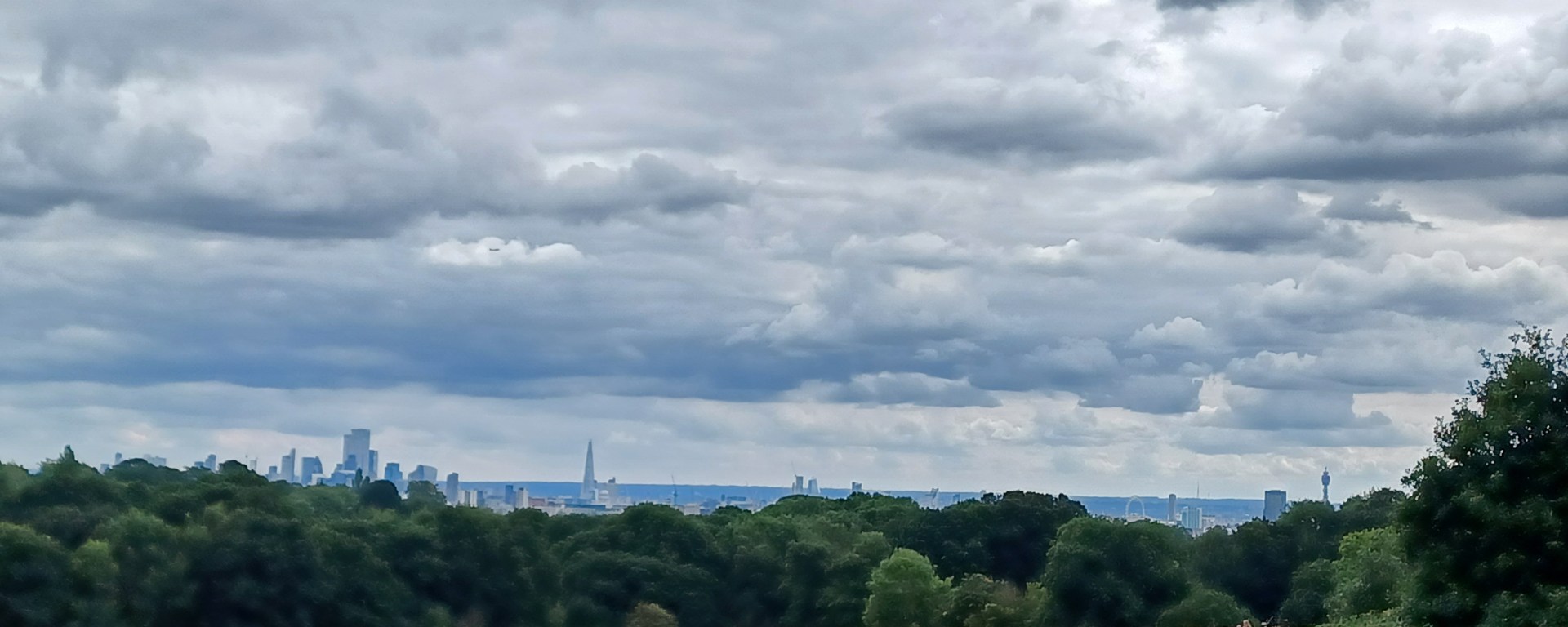 Photo on top of this post: View of the Shard, St Paul’s Cathedral, the City, and the London Eye from Kenwood, at the northern edge of Hampstead Heath.